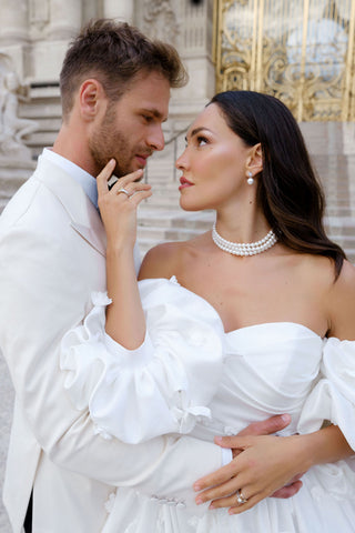 The ultimate pair of modern pearls, that will go with any style of wedding dress or suit. But the best thing about them? They look amazing with that chunky knit or Sequin dress too. Time to say 'yes' to these...